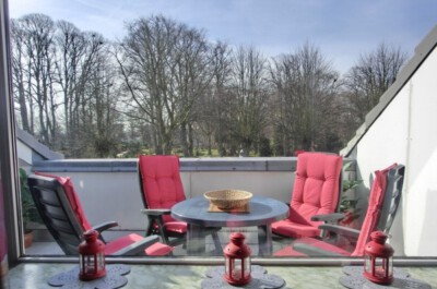 Extras: Balkon in südlicher Richtung mit Markise, PKW-Abstellplatz in der Tiefgarage, Fahrradraum im Keller, Reisekinderbett und Hochstuhl stehen Ihnen kostenlos zur Verfügung.
